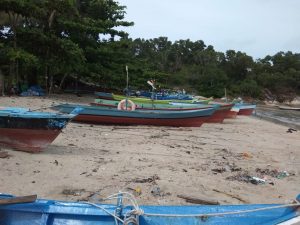 Gelombang besar ditambah intensitas hujan yang sangat tinggi mengakibatkan perahu nelayan kelebu (tenggelam).
