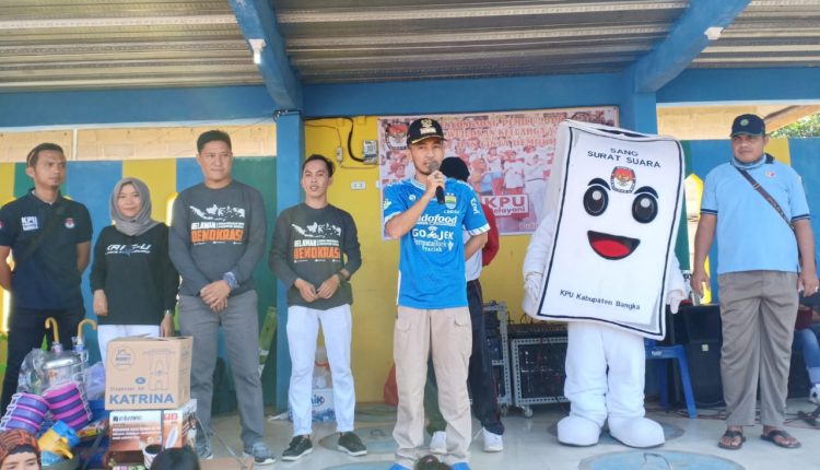 Sosialisasi Pemilu yang diselenggarakan Relawan Demokrasi (Relasi) KPU Bangka di lapangan bola Rom Desa Puding Besar pada Jum’at (15/3).