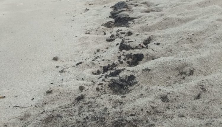 Limbah oli yang muncul kepermukaan pantai kini terlihat sangat jelas, karena situasi gelombang mengikis bibir pantai dan membuat bekas limbah oli tampak berserakan dan mengotori bibir pantai.