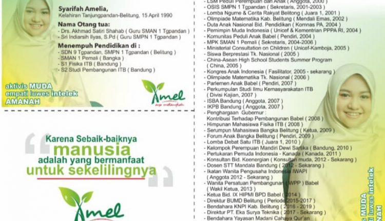 Serta di usia 27 Tahun, Syarifah Amelia juga sudah menjadi Direktur BUMD Kabupaten Belitung. ” Dari kecil, memang salah satu cita – cita saya ialah membangun Babel yang sejahtera,” ungkap Syarifah Amelia.