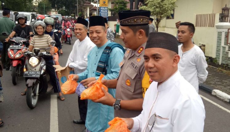 SATUARAHNEWS.COM, PANGKALPINANG— Pemerintah Kota (Pemkot) Pangkalpinang bekerjasama dengan Bank BRI Cabang Pangkalpinang, membagian 600 paket takjil kepada para pengguna jalan, di kawasan Jl. Jendral Sudirman, Kota Pangkalpinang. Kamis, (16/5/19).