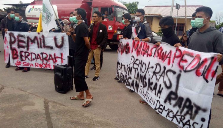 SATUARAHNEWS.COM, PANGKALPINANG—Sebanyak 25 orang Massa dari Kesatuan Aksi Mahasiswa Muslim Indonesia (KAMMI) melaksanakan unjuk rasa di kantor KPU Provinsi Kepulauan Bangka Belitung di jalan Raya Mentok, Kota Pangkalpinang pada Selasa (21/05/2019).