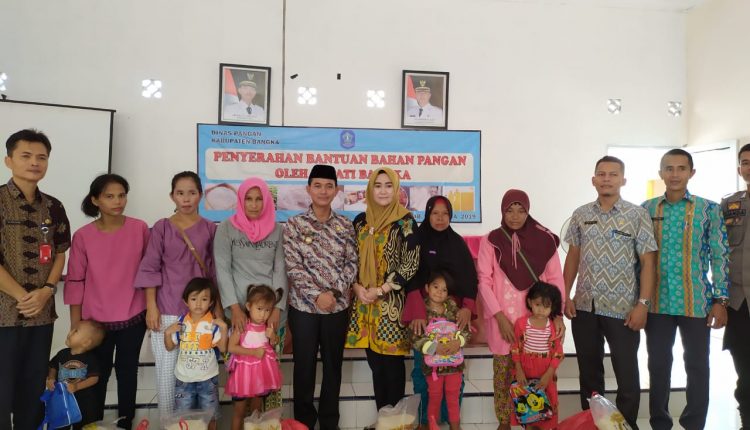 Prosesi penyerahan bntuan bahan pangan oleh Bupati Bangka dipakukan pada Kamis (23/05/19) di Kantor Desa Riding Panjang, Kecamatan Belinyu.
