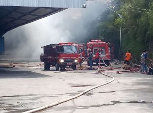 SATUARAHNEWS.COM, PANGKALPINANG—Gudang PT. Pangkalpinang Distribusindo Raya merupakan produk Wings, yang berada di jalan Abdullah H. Seman, Kecamatan Gabek, Kota Pangkalpinang habis dilalap si jago merah (terbakar). Jumat, (24/5/9) siang.
