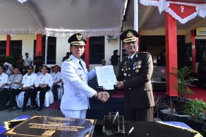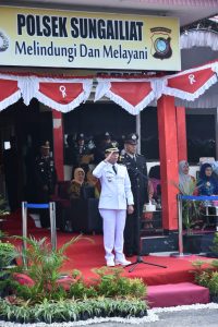 kerja keras dan pengabdian Polri yang telah dirasakan oleh seluruh masyarakat Indonesia, khususnya di Kabupaten Bangka, dalam sambutannya upacara Peringatan membuka HUT Bhayangkara Ke 73 di Halaman Polsek Sungailiat , Rabu (10/07/19)