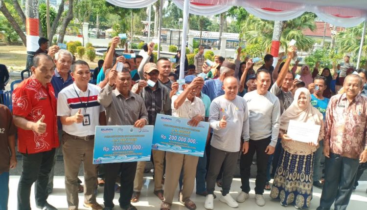 PANGKALPINANG— Pemerintah Kota (Pemkot) Pangkalpinang bekerjasama dengan asuransi Jasindo, membagikan 178 Kartu Asuransi Nelayan Kota Pangkalpinang, yang diselenggarakan, di Halaman Rumah Dinas Walikota Pangkalpinang.