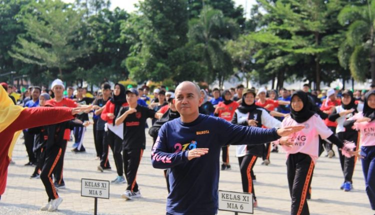PANGKALPINANG– Sekitar 700 siswa-siswi SMA negeri satu Kota Pangkalpinang,mengikuti Senam Bedincak di Alun-alun Taman Merdeka Kota Pangkalpinang dalam rangka memperingati hari puncak HUT ke 61 SMANSA, Sabtu (28/08/2019.)