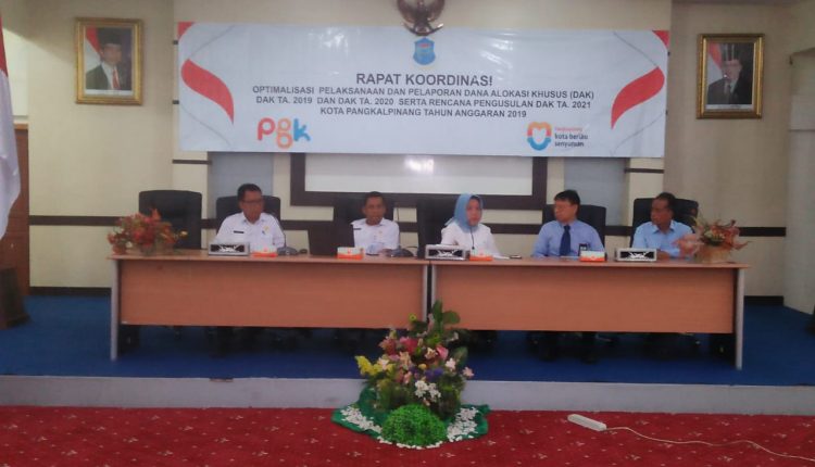 Rapat koordinasi tersebut membahas optimaliaasi pelaksanaan dan pelaporan Dana Alokasi Khusus (DAK) tahun 2019 dan DAK tahun anggaran 2020 serta rencana pengusulan DAK tahun anggaran 2021 Kota Pangkalpinang.