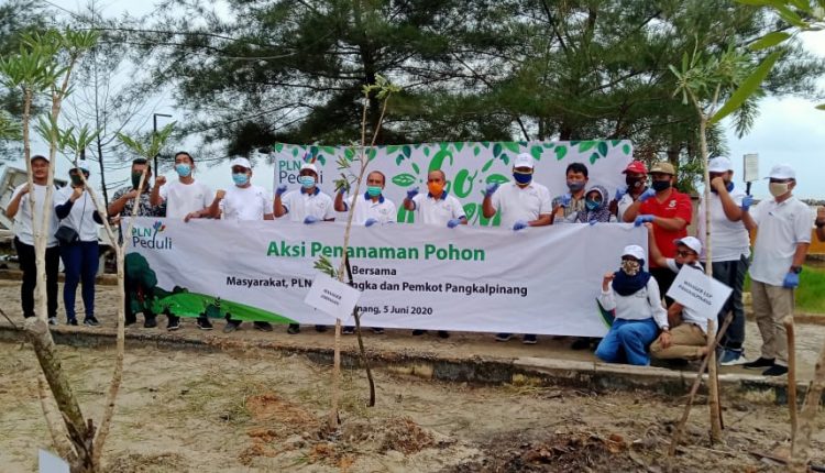 PANGKALPINANG— Wali Kota Pangkalpinang, Provinsi Kepulauan Bangka Belitung, Maulan Aklil (Molen) bersama dengan PLN UP3 melakukan penghijauan dengan menggelar aksi penanaman pohon dengan melibatkan masyarakat di Pantai Pasir Padi.