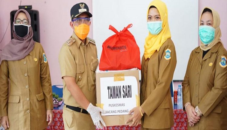 PANGKALPINANG—- Wali Kota Pangkalpinang, Maulan Aklil menyerahkan bantuan sosial dari Kementerian Sosial RI kepada Puskesmas di Kota Pangkalpinang pada Senin, (15/6/2020) di Puskesmas Kacang Pedang.
