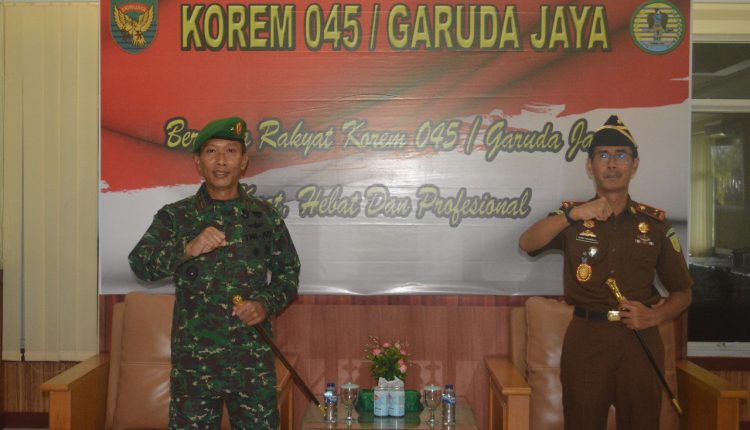 ” Kembali menjalin komunikasi yang telah berjalan dengan baik selama ini, pada kesempatan ini, kami berkunjung ke Korem 045/Gaya,” kata Kajati.