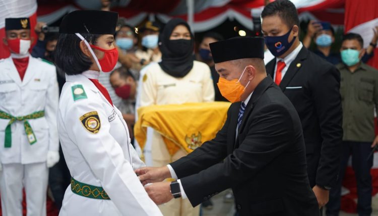 Walikota Pangkalpinang, Maulan Aklil mengukuhkan dan melantik sebanyak 36 pelajar, menjadi Pasukan Pengibar Bendera (Paskibra) tingkat Kota Pangkalpinang Tahun 2020 , di rumah dinas Walikota Pangkalpinang, Sabtu (15/8/2020) malam.