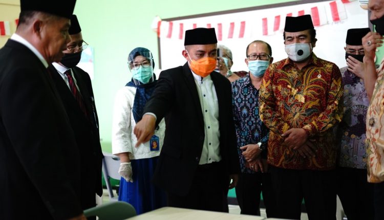 PANGKALPINANG — Walikota Pangkalpinang, Maulan Aklil secara resmi menandatangani Prasasti KB-TK- SD Islam Al-Azhar Kota Pangkalpinang, dalam acara Tasyakuran dan Peresmian Sekolah Al-Azhar. Jumat, (21/8/2020).