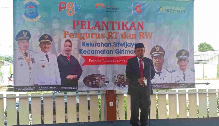 PANGKALPINANG — Walikota Pangkalpinang, Maulan Aklil, menghadiri pelantikan pengurus RT dan RW Kelurahan Sriwijaya periode 2020 – 2025, di Kedai Stasion, Kecamatan Girimaya, Kota Pangkalpinang, Selasa (10/11/2020).