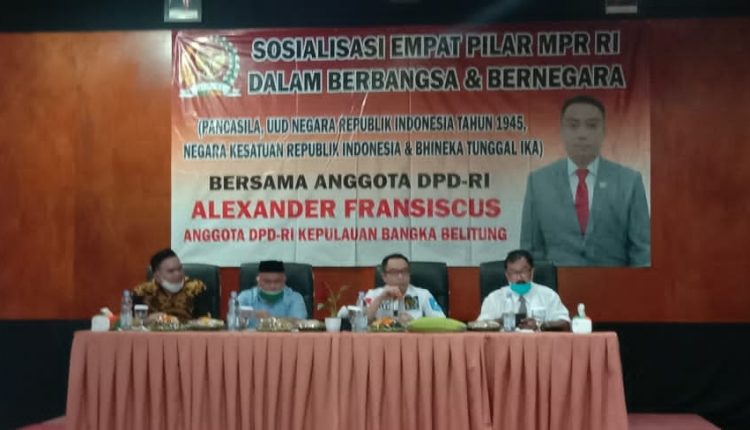 PANGKALPINANG—- Anggota DPD RI Perwakilan Provinsi Bangka Belitung, Alexander Frasnsiscus menggelar Sosialisasi Empat Pilar MPR RI dalam Berbangsa & Bernegara, di Bangka City Hotel, Kamis, (26/11/2020).