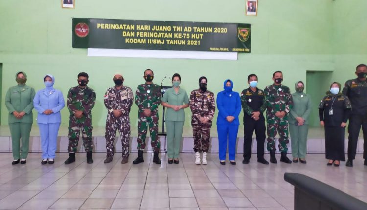 PANGKALPINANG – Korem 045/Garuda Jaya beserta jajaran menggelar donor darah dalam rangka peringatan Hari Juang TNI AD Tahun 2020 dan peringatan ke 75 HUT Kodam II/Swj Tahun 2021 di gedung serbaguna Kodim 0413/Bangka, Senin (7/12/2020).