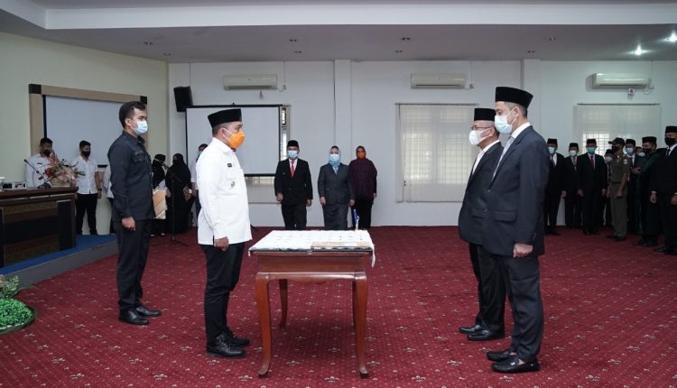 PANGKALPINANG — Wali Kota Pangkalpinang, Maulan Aklil melantik sebanyak 133 Pejabat Tinggi Pratama, Pejabat Administrator dan Pejabat Pengawas, di Lingkungan Pemerintah Kota Pangkalpinang, Rabu, (20/1/2021) di Gedung Pertemuan OR Kantor Wali Kota Pangkalpinang.