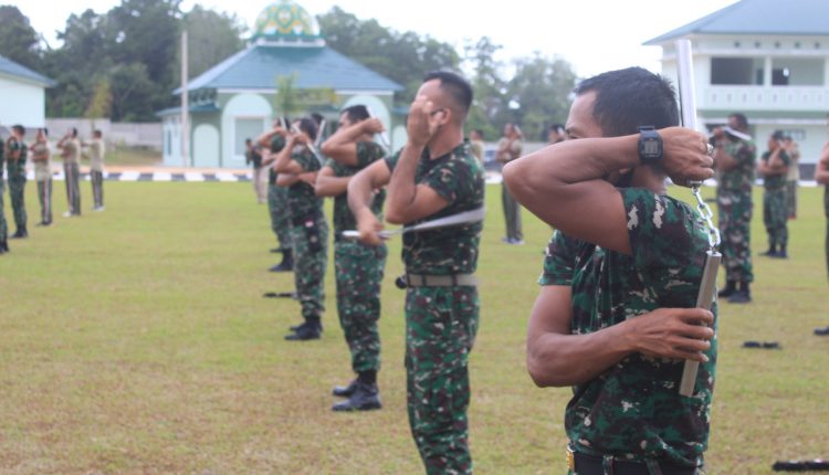 Prajurit Korem 045/Garuda Jaya Berlatih Bela Diri Double Stick