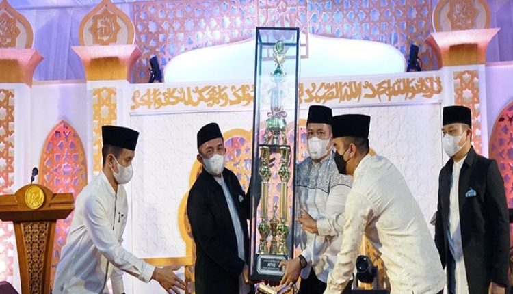 Wali Kota Pangkalpinang, Maulan Aklil menghadiri pembukaan Musabaqoh Tilawatil Qur’an dan Hadits (MTQH) XXIX Tahun 2021 tingkat Kota Pangkalpinang yang dilaksanakan di Ruang OR Lantai 1 Kantor Wali Kota Pangkalpinang, Kamis (1/4/2021) malam.