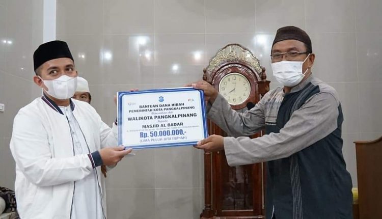 Kegiatan tersebut langsung dihadiri oleh Wali Kota Pangkalpinang, Maulan Aklil sekaligus menyerahkan bantuan dana hibah dari Pemkot Pangkalpinang kepada pengurus masjid.