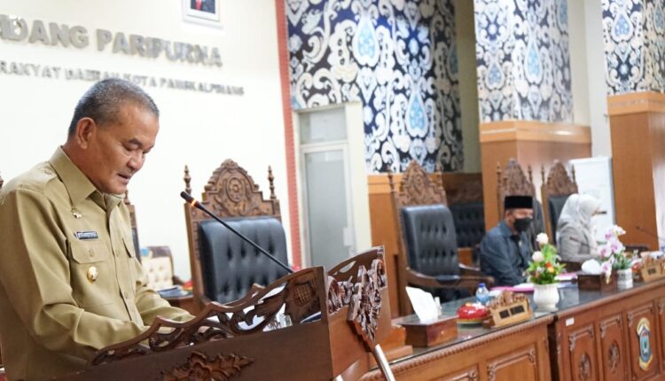 PANGKALPINANG — Wakil Wali Kota Pangkalpinang, M. Sopian, memberikan sambutan pada acara Rapat Paripurna Kedelapan Belas Masa Persidangan III Tahun 2021. Senin, (28/6/2021).