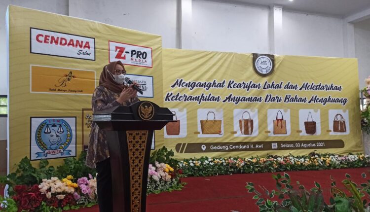 Pangkalpinang- Monica Haprinda Maulan Aklil selaku Ketua Tim Penggerak PKK Kota Pangkalpinang, melontarkan pujiannya kepada para peserta Workshop pembuatan Tas anyaman dari daun bengkuang yang diadakan oleh Lembaga Pelatihan dan Keterampilan (LPK) Cendana sebagai pribadi yang positif dan kreatif.