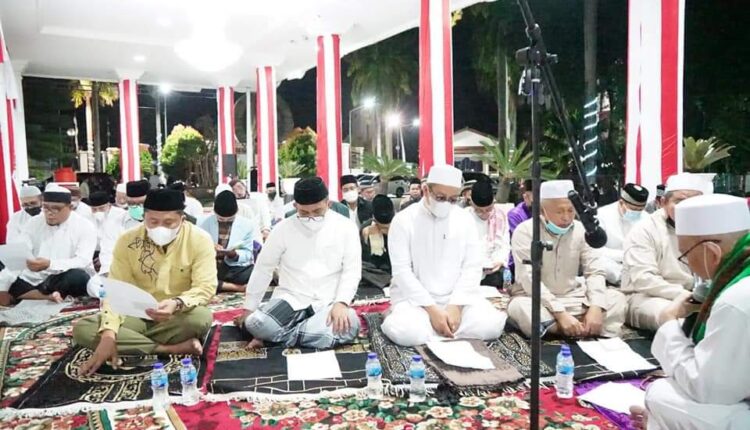 Wali Kota Pangkalpinang Maulan Aklil (Molen) bersama ulama, MUI, DMI, tokoh agama serta tokoh masyarakat istighosah qubro dimalam terakhir 10 muharram, Selasa (24/5/2021) malam, di rumah dinas wali kota.