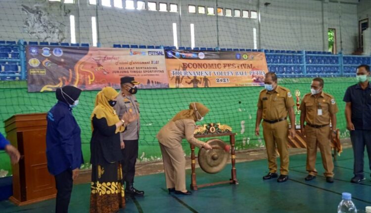 PANGKALPINANG – Sekretaris Daerah Kota Pangkalpinang Radmida Dawam membuka Economic Festival 2021 (Ecofest) Fakultas Ekonomi Universitas Bangka Belitung di GOR Depati Bahrein, Senin(13/9/2021).