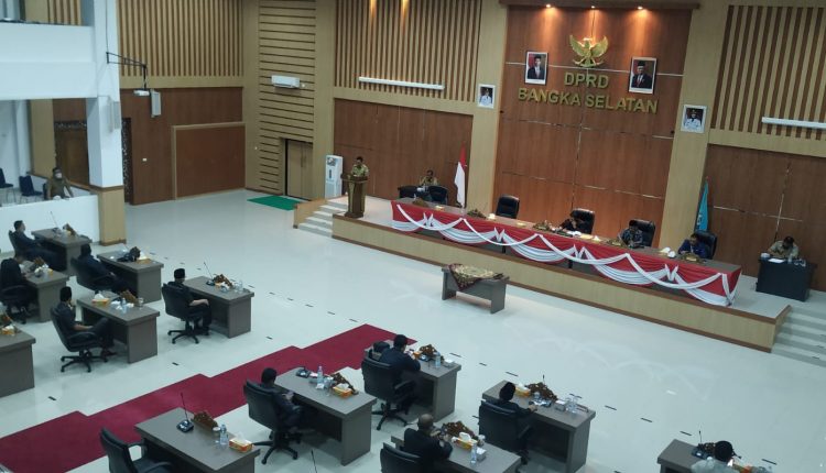 TOBOALI,– Dewan Perwakilan Rakyat Daerah Kabupaten Bangka Selatan menggelar rapat paripurna dengan agenda pengambilan keputusan terhadap rancangan peraturan daerah anggaran pembangunan dan belanja daerah (APBD) 2022, Selasa (30/11/2021).