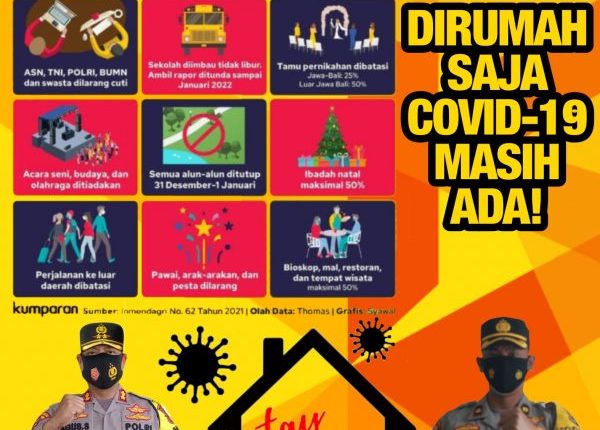 “Dilarang pulang kampung dan berpergian selama libur Natal dan Tahun Baru, menutup fasilitas umum seperti alun-alun dan lapangan terbuka dan pelaku perjalanan memakai transportasi umum minimal harus sudah vaksin dosis pertama,” ujar Kapolres.