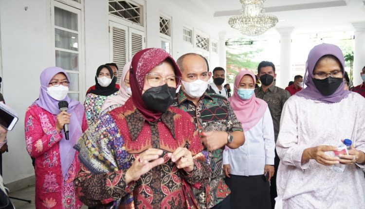 PANGKALPINANG — Wali Kota Pangkalpinang, Maulan Aklil nampak gembira karena telah hadirnya sosok idola yakni Menteri Sosial RI, Tri Rismaharini, di Rumah Dinas Wali Kota Pangkalpinang. Sabtu, (18/12/2021).