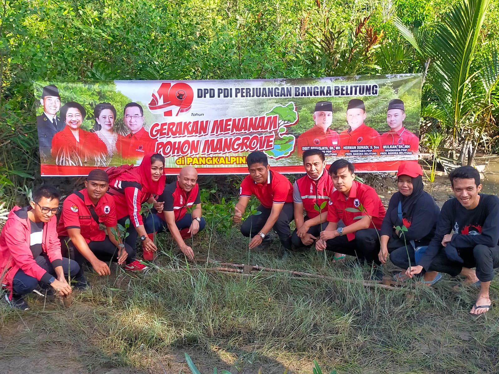 Bertepatan HUT ke-75 Megawati Soekarnoputri dan PDI Perjuangan, DPC PDI-P Pangkalpinang Tanam 1.500 Mangrove
