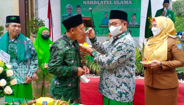 SATUARAHNEWS, TOBOALI — Bupati dan Wakil Bupati beserta unsur Forkopimda Kabupaten Bangka Selatan, hadir pada peringatan hari lahir Nahdlatul Ulama ke-96 Tahun, bertempat di Kantor Pengurus Cabang Nahdlatul Ulama, Kecamatan Toboali, Kelurahan Teladan, Senin (31/1/22)