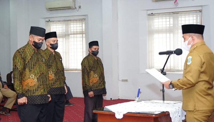 PANGKALPINANG — Wali Kota Pangkalpinang Maulan Aklil atau akrab disapa Molen melantik dan mengambil sumpah jabatan pimpinan Badan Amil Zakat Nasional (BAZNAS) Kota Pangkalpinang Periode 2022-2027, di Ruang Pertemuan (OR) kantor Wali Kota Pangkalpinang, Senin (20/2/2022).