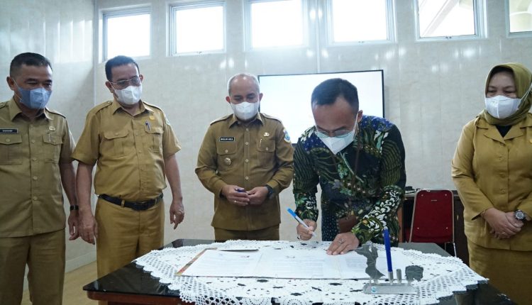 PANGKALPINANG, DISKOMINFO – Kantor Wilayah Direktorat Jenderal Perbendaharaan (DJPb) Provinsi Kepulauan Bangka Belitung dan Pemerintah Kota Pangkalpinang menandatangani MoU atau Nota Kesepahaman mengenai kerja sama pengelolaan keuangan pusat dan daerah di Kota Pangkalpinang, di Ruang Rapat Tengah Kantor Wali Kota Pangkalpinang, Selasa (22/2/2022).