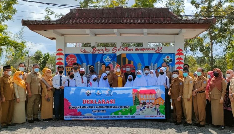 SatuarahNews,Toboali- Wakil Bupati Bangka Selatan, Debi Vita Dewi mendeklarasikan Sekolah Ramah Anak, di Kabupaten Bangka Selatan Tahun 2022 pada, Selasa(1/3/2022).
