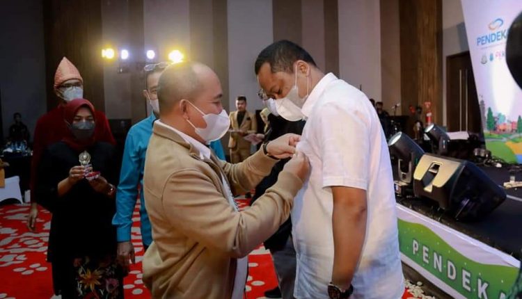 PANGKALPINANG — Pada malam penganugerahan pendekar award sekaligus launching SIKOKO PENDEKAR (Sinergi, Kolaborasi dan Komitmen Pejuang Pendapatan Asli Daerah), Wali Kota Pangkalpinang Maulan Aklil memberikan penghargaan tertinggi kepada Kepala Kejaksaan Negeri Pangkalpinang, Jefferdian yang melalui program PENDEKAR-nya, Pendapatan Asli Daerah (PAD) Kota Pangkalpinang meningkat dan terbesar dalam sejarah Kota Pangkalpinang, Jum’at Malam (11/3/2022) di Ballroom Fox Harris Hotel Pangkalpinang.