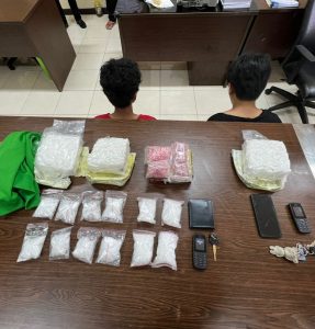 PANGKALPINANG — Tim gabungan BNN Provinsi Kepulauan Babel, Bea Cukai Pangkalpinang dan Polres Pangkalpinang di bawah kendali Kabid Berantas BNNP Babel, Kombes Pol Dinnar Widargo berhasil meringkus pria berinisial AS (22) dan TS (25). Selasa, (5/4?2022)
