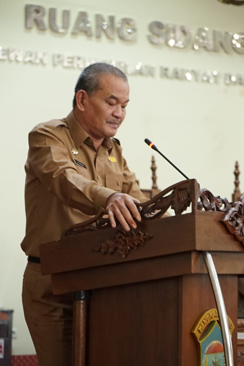PANGKALPINANG, – Wakil Wali Kota Pangkalpinang, Muhammad Sopian menghadiri Rapat Paripurna Ke-17 Masa Persidangan II dengan agenda utama Keputusan DPRD Kota Pangkalpinang terhadap Laporan Keterangan Pertanggung-jawaban (LKPJ) Wali Kota Pangkalpinang tahun anggaran 2021, Senin (18/4/2022) di Ruang Sidang Paripurna DPRD Kota Pangkalpinang.