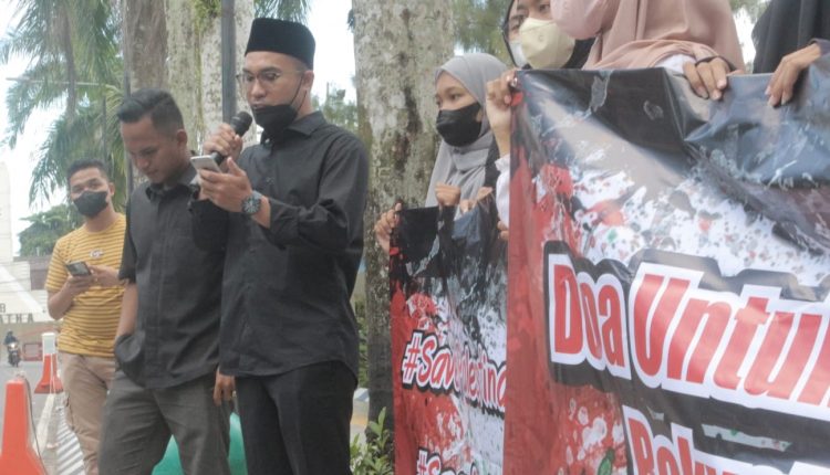 Dalam aksi damai ini, merekan mengecam tindakan Israel yang melakukan penindasan umat muslim Palestina yang sedang beribadah di Masjid Al-Aqsa di tengah bulan Ramadhan.