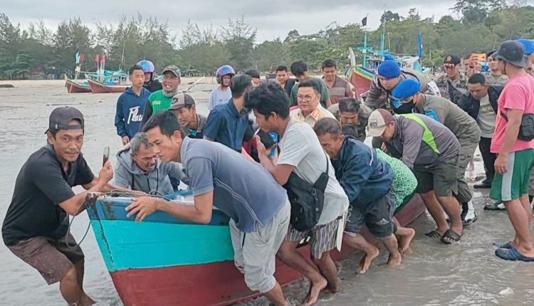 Kapal yang ditumpangi kepala daerah Kabutapen Bangka Selatan beserta rombongan nelayan itu sempat miring akibat dihempas gelombang air laut.