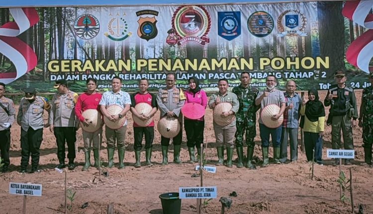 SatuArahNews, Toboali- Kepolisian Resor bersama unsur Forkopimda Bangka Selatan melakukan gerakan penanaman pohon tahap II di lahan pasca eks tambang hutan lindung Lubuk Besar Toboali. Jumat (24/6/2022) pagi