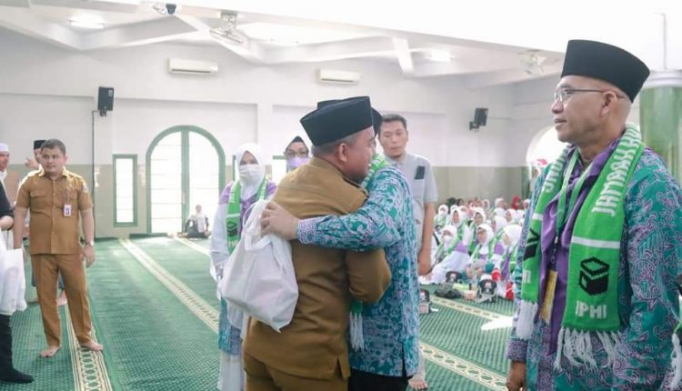 PANGKALPINANG — Wali Kota Pangkalpinang Dr. H. Maulan Aklil (Molen) menghadiri pelepasan jemaah haji sebanyak 112 orang se-kota Pangkalpinang tahun 2022, Senin (27/6/2022) di Masjid Jamik Kota Pangkalpinang.