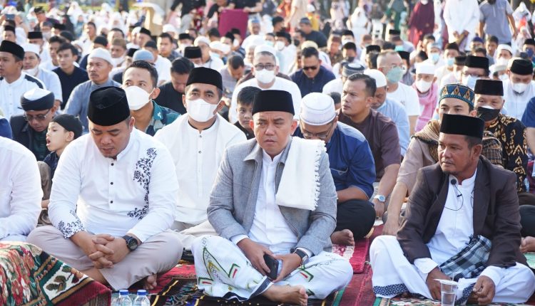 Dihadiri ribuan masyarakat, Molen sapaan akrab wali kota dalam sambutannya memaknai Hari Raya Idul Adha 1443 Hijriah sebagai buah kesabaran atas iman dan taqwa kepada Allas SWT.