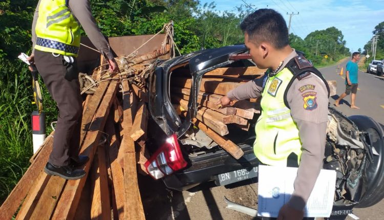 Berhenti di Bahu Kiri Jalan, Mobil Vitara Hantam Mobil Muatan Kayu