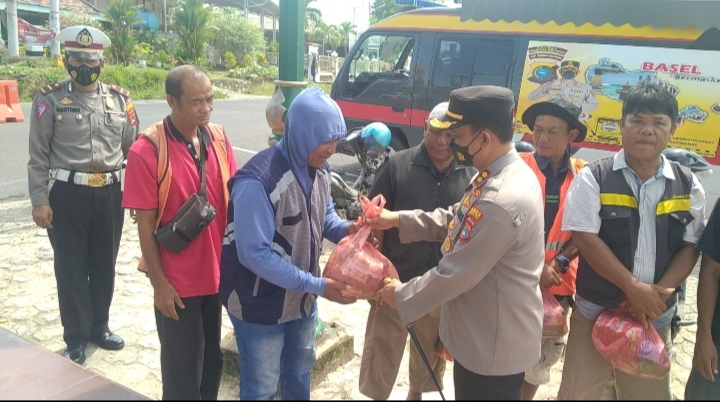 Harga BBM Naik, Polres Basel Bagikan Paket Sembako Kepada Tukang Ojek