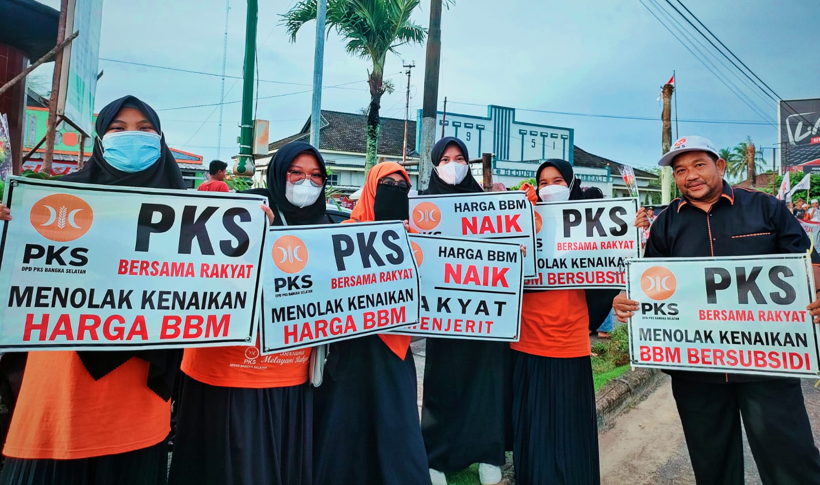 Terlihat, Puluhan simpatisan dan kader dari Partai Keadilan Sejahtera Bangka Selatan juga turut menyuarakan aspirasi dengan membentangkan spanduk yang bertuliskan penolakan kenaikan harga BBM dan membagikan bunga kepada masyarakat yang melintas di seputaran Jalan Jenderal Sudirman Toboali.