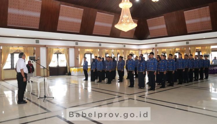 Dilaksanakan pula Pengambilan Sumpah PNS Penempatan Tugas di lingkungan Pemerintah Provinsi Kepulauan Bangka Belitung yang disaksikan Kepala BKPSDM Babel Susanti dan Asisten III Yunan Helmi.