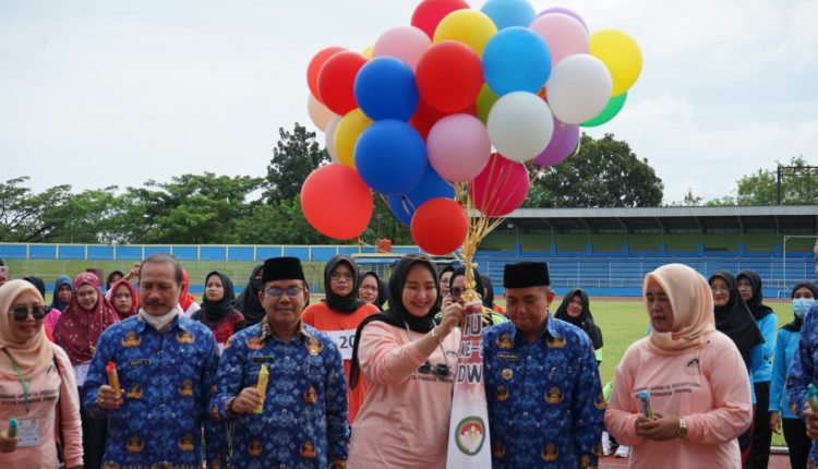 PANGKALPINANG – Wali Kota Pangkalpinang Maulan Aklil (Molen) dan Ketua Tim Penggerak PKK Pangkalpinang Monica Haprinda membuka membuka perlombaan lari estafet DWP Kota Pangkalpinang, di Stadion Depati Amir, Kamis (17/11/2022).