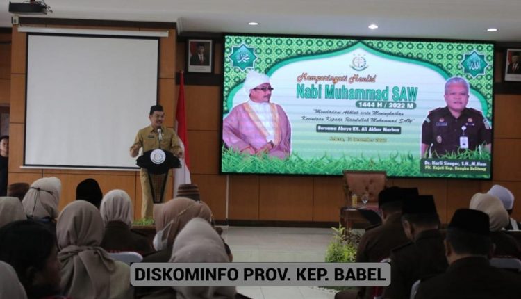 PANGKALPINANG – Sekretaris Daerah (Sekda) Kepulauan Bangka Belitung (Kep. Babel) Naziarto, berkesempatan menghadiri acara peringatan Maulid Nabi Muhammad SAW 1444 H yang digelar di Gedung Wicaksana Kejaksaan Tinggi (Kejati) Kep. Babel, Selasa (13/12/2022).
